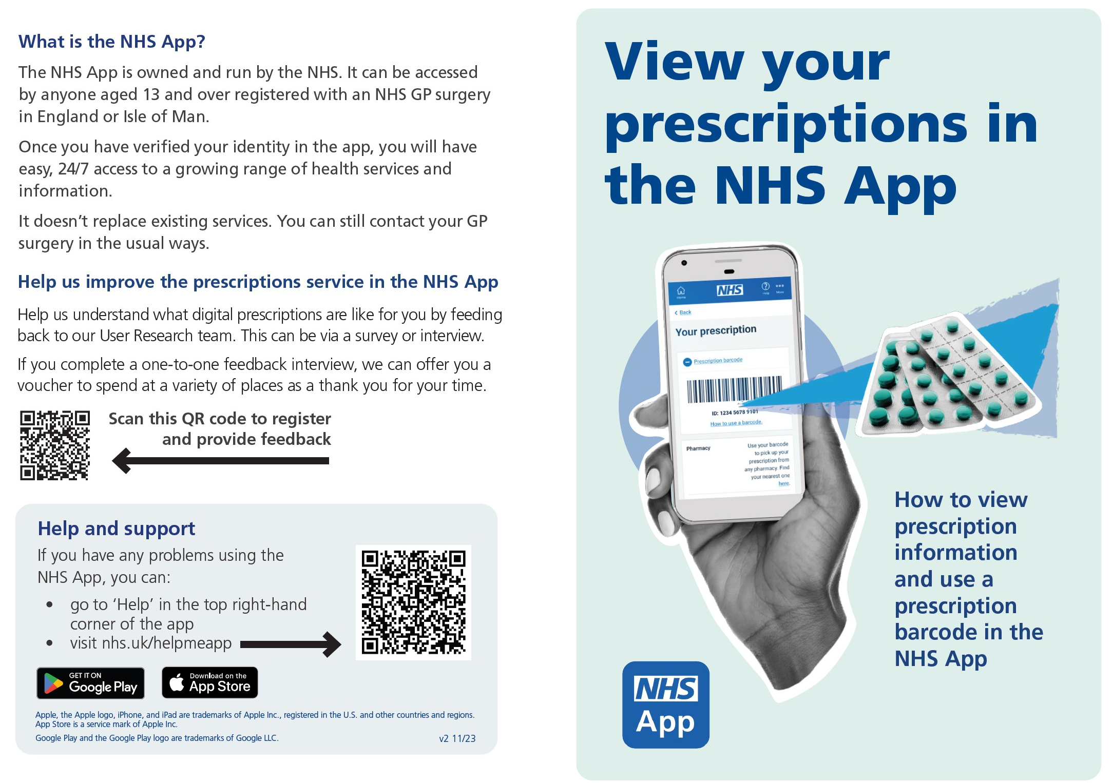 If you have a query about a missing prescription, please use the NHS App to help provide you with the barcode which confirms when for that prescription. This can then be shown to the Pharmacy to help retrieve your medication. Please read the following leaflet for more information: